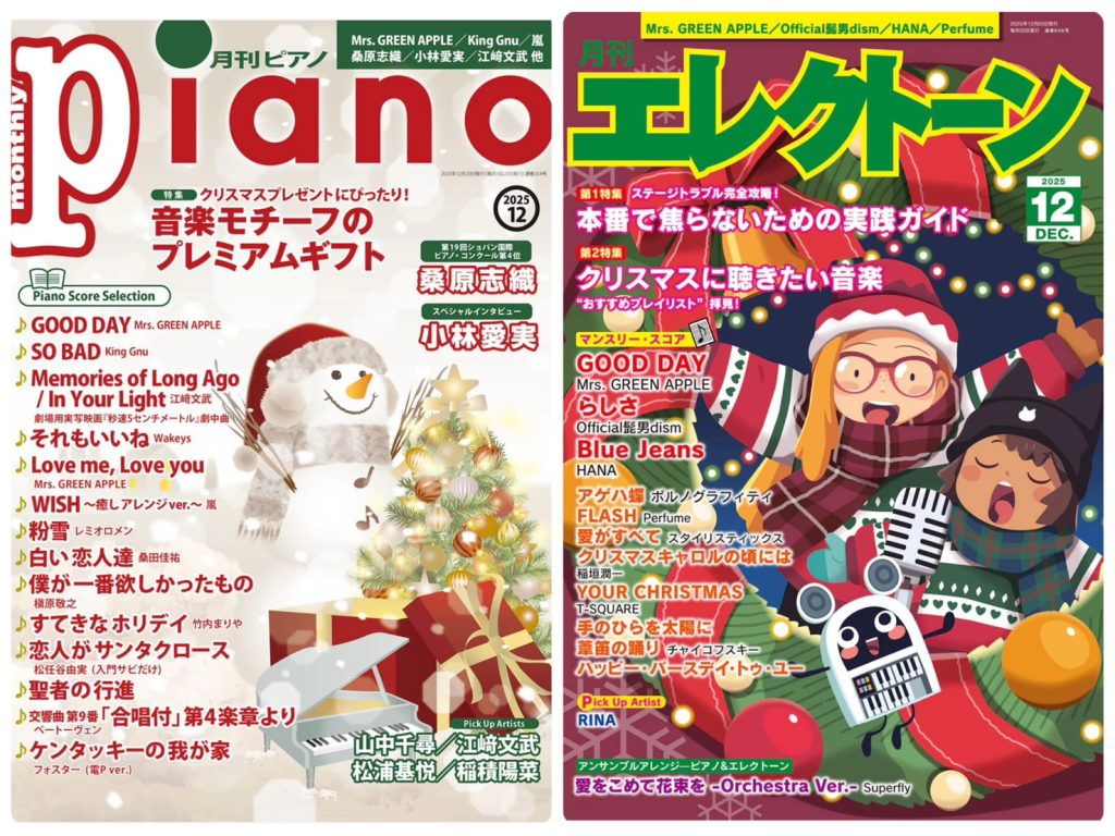 今月発売の月刊ピアノ&月刊エレクトーンはクリスマスカラーで表紙を飾ってます。