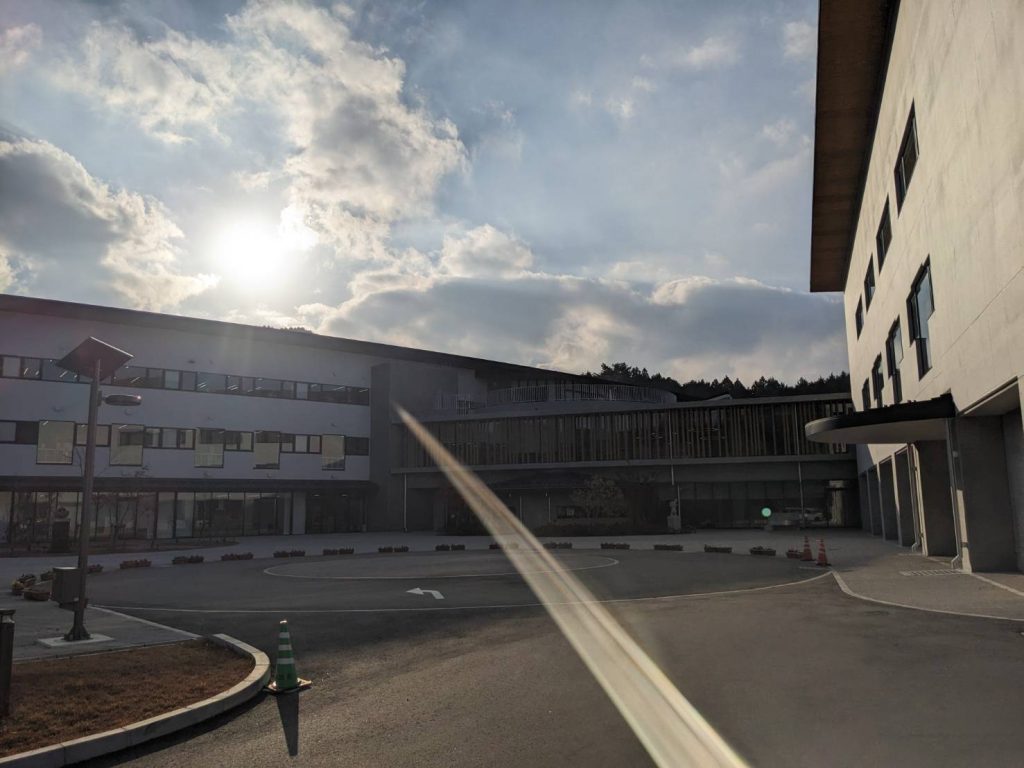 子ども園・小学校・中学校・図書館などが1つにまとめられ、新しくとてもきれいな施設になっていました。