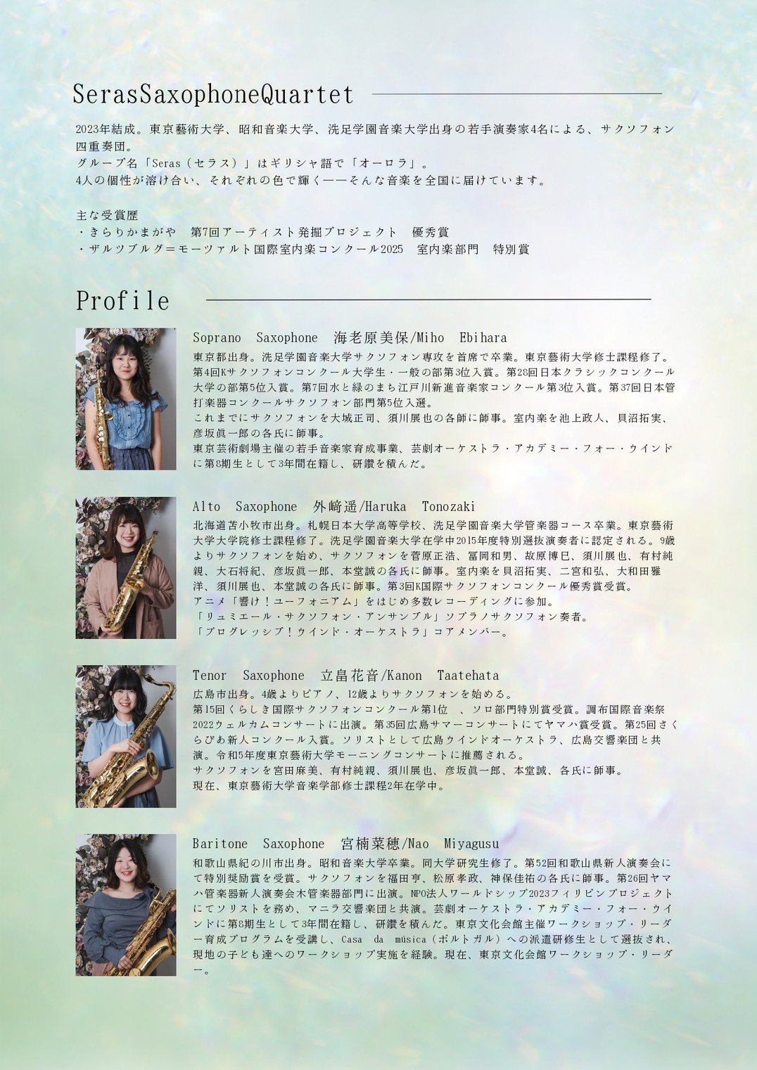 メンバーそれぞれの出身地 北海道・東京・和歌山・広島で公園するそうです。なぜ和歌山が入っているかというと、バリトンサックス担当の宮楠菜穂さんが紀の川市出身だからです。ちなみに彼女、子供の頃は富永楽器の音楽教室で学んでいました♫